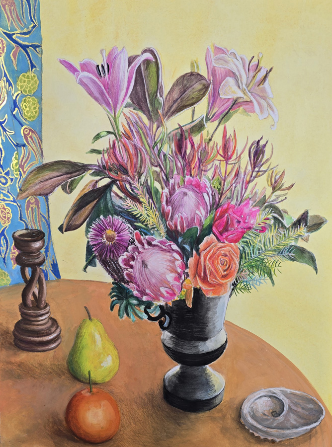 Still Life with Roses and Quince 2022 Watercolour on Paper 67 x 97 cm