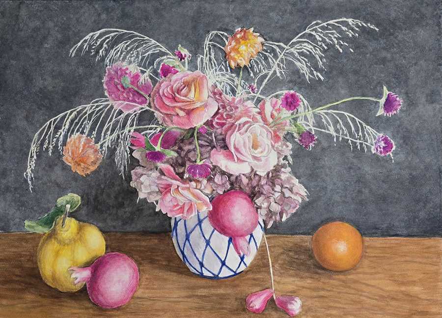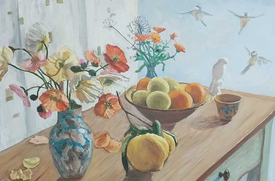 Painting of Hope from Harvest Studios McLaren Vale Painting of Hope from Harvest Studios McLaren Vale, with a beautiful arrangement. For my upcoming exhibition at Noarlunga Arts Centre, 2025
